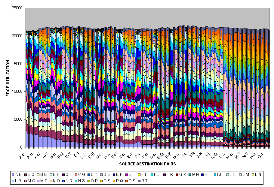 The following two tables display the results obtained from 1000 executions of two source-destination pairs.